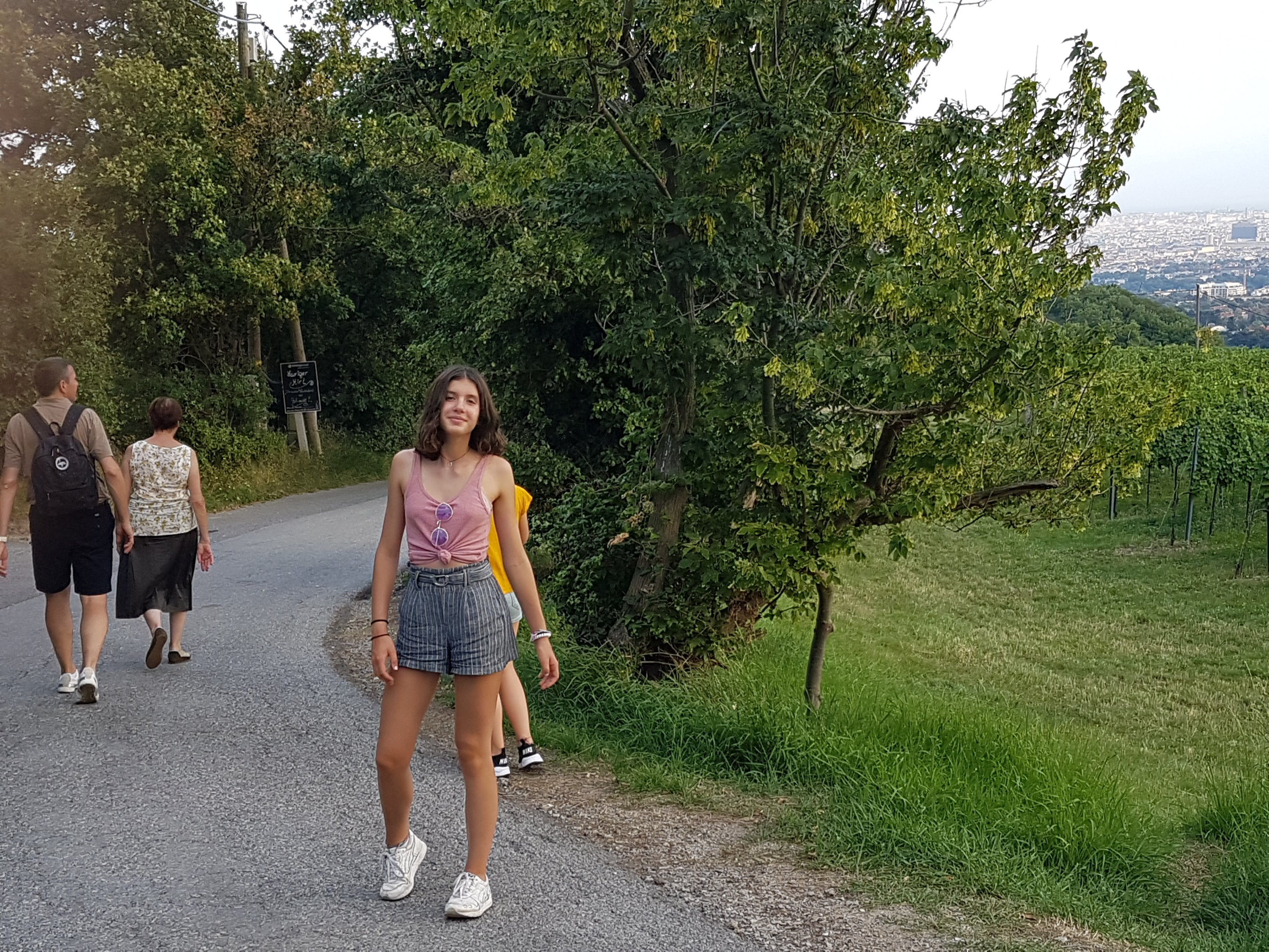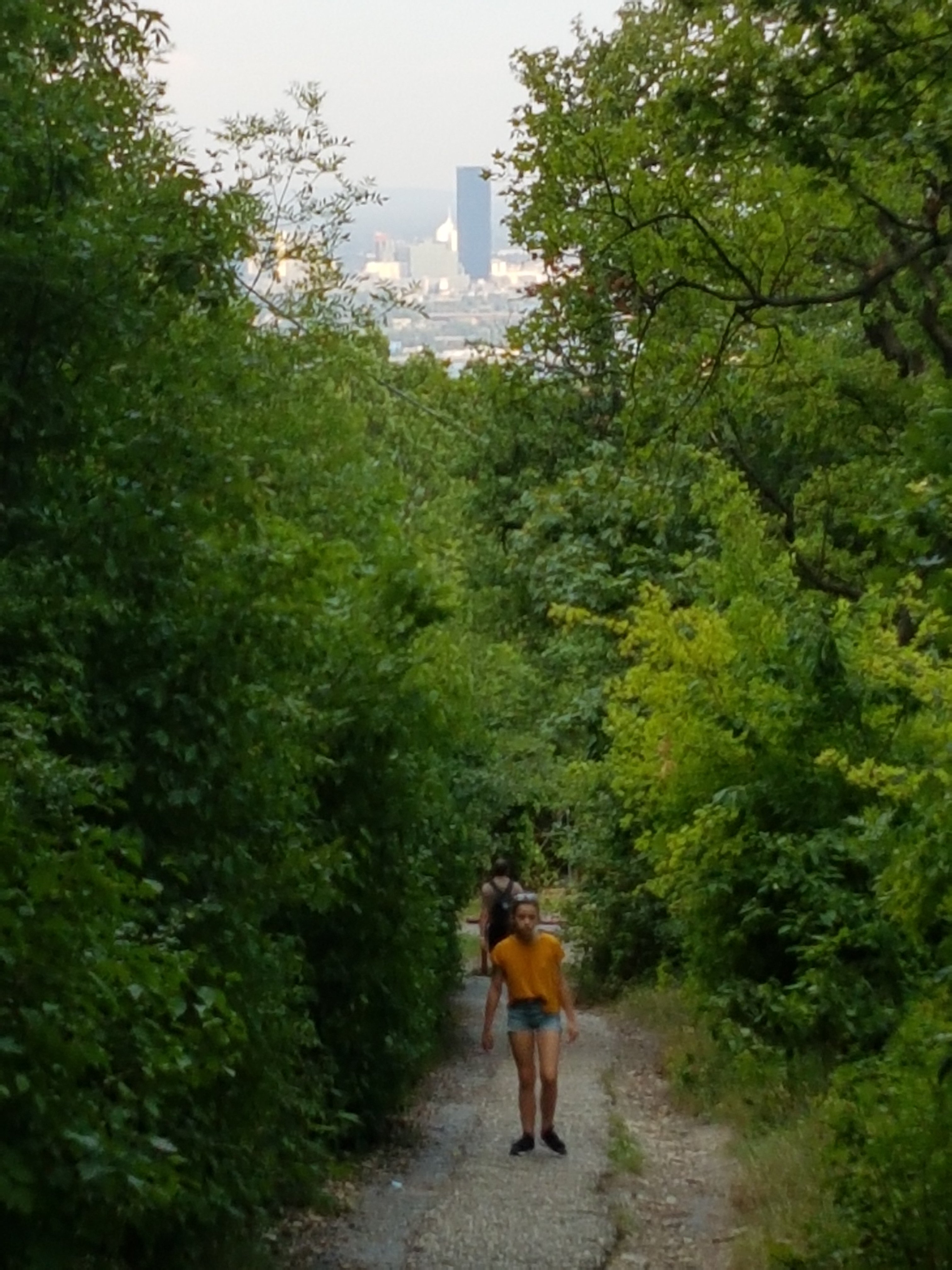 Belle balade entre les vigne pour redescendre à Grinzing, ville de Beethoven et des vignerons et leurs boissons rafraichissantes. Elles sont les bienvenues au Heurigen, après la marche dans la canicule.