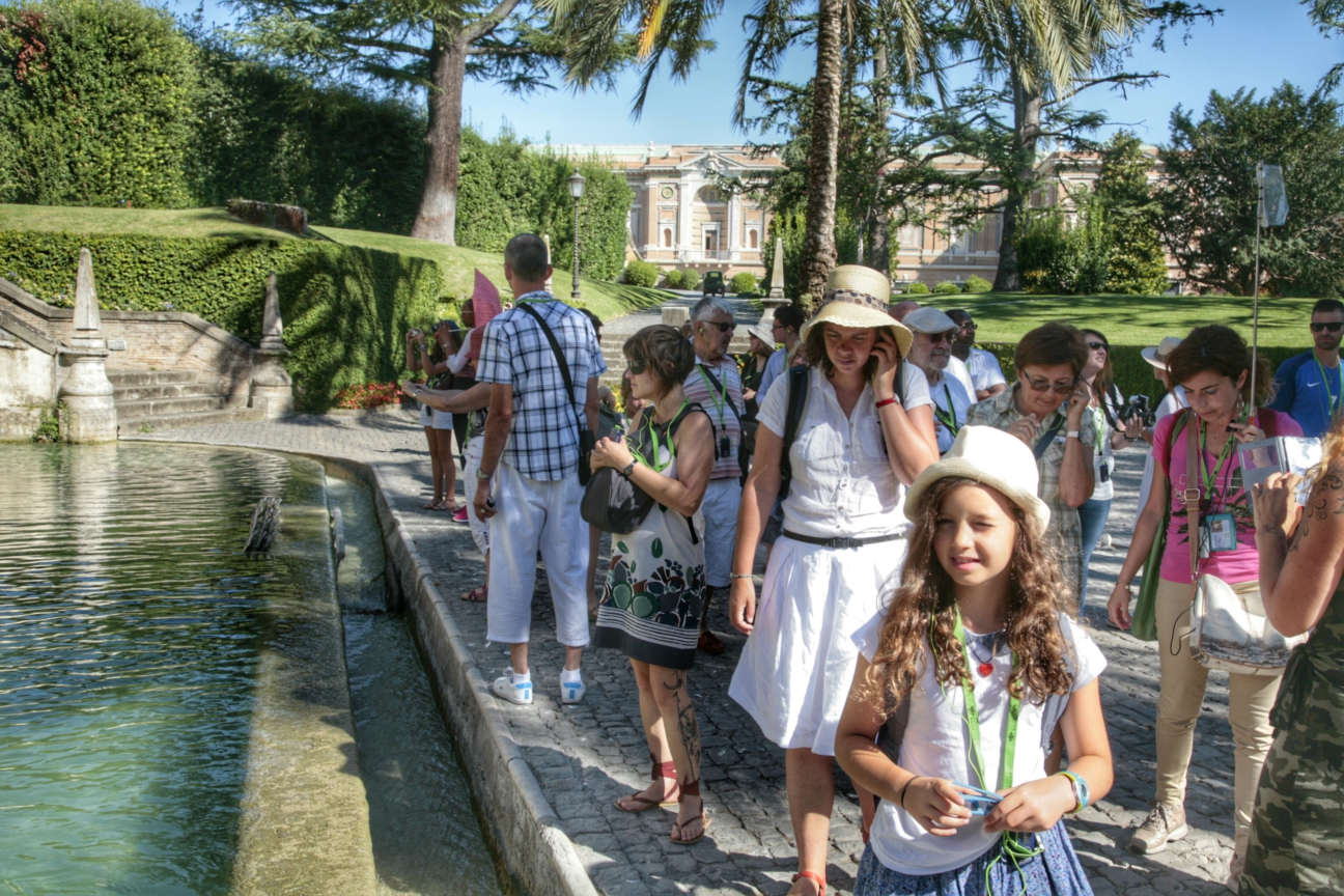 … le pape d’avoir de si beaux jardins et de nous les avoir laisser visiter ! Aujourd’hui nous rejoignons les masses pour traverser le Vatican, sa pinacothèque et autres galeries saturées de peintures et sculptures, jusqu’à la Chapelle Sixtine. Maurine et Julie n’en redemandent pas car les sandalettes commencent à compter les heures debout !