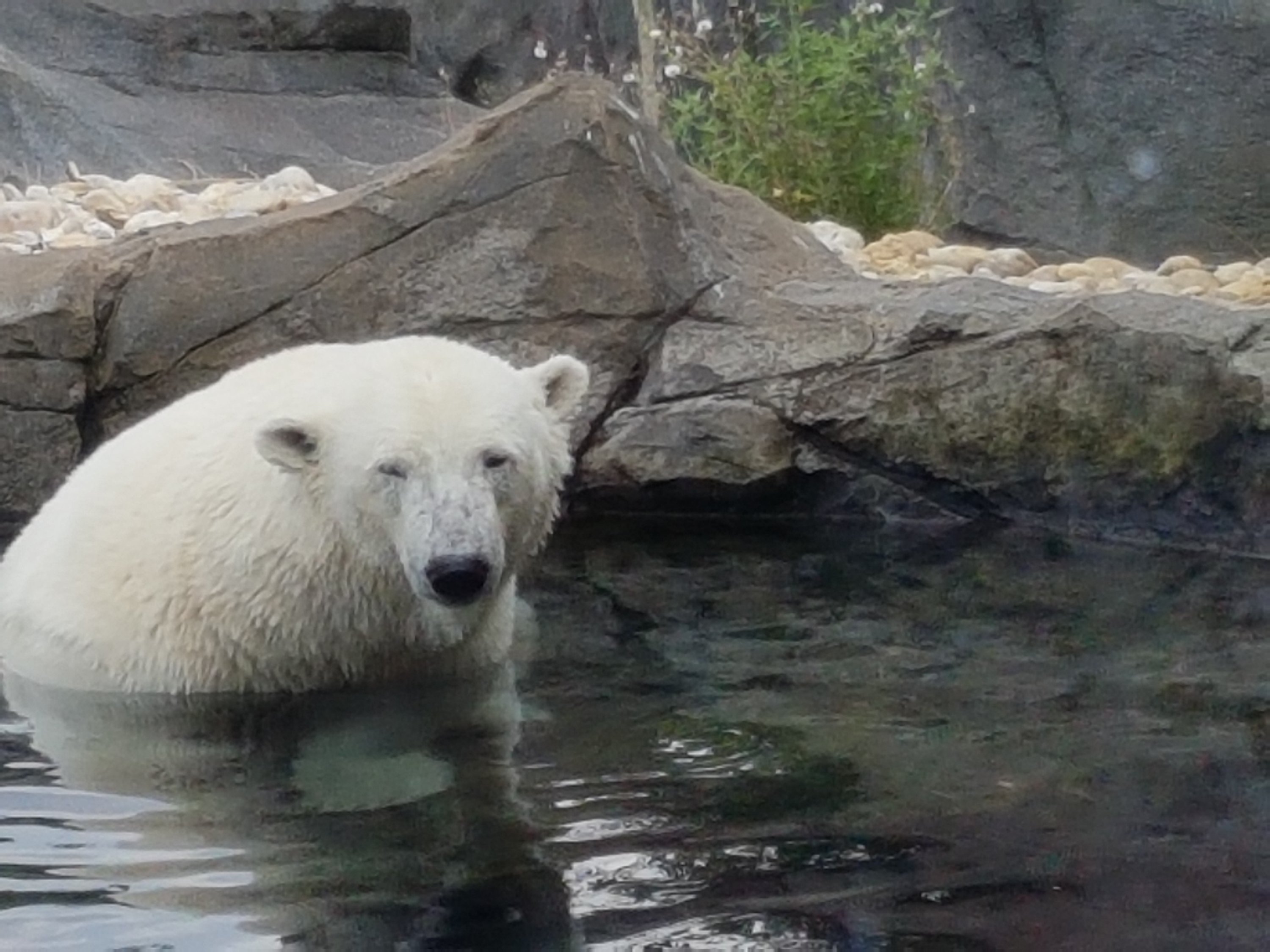 L’ours blanc a la chance de prendre un bain frais.