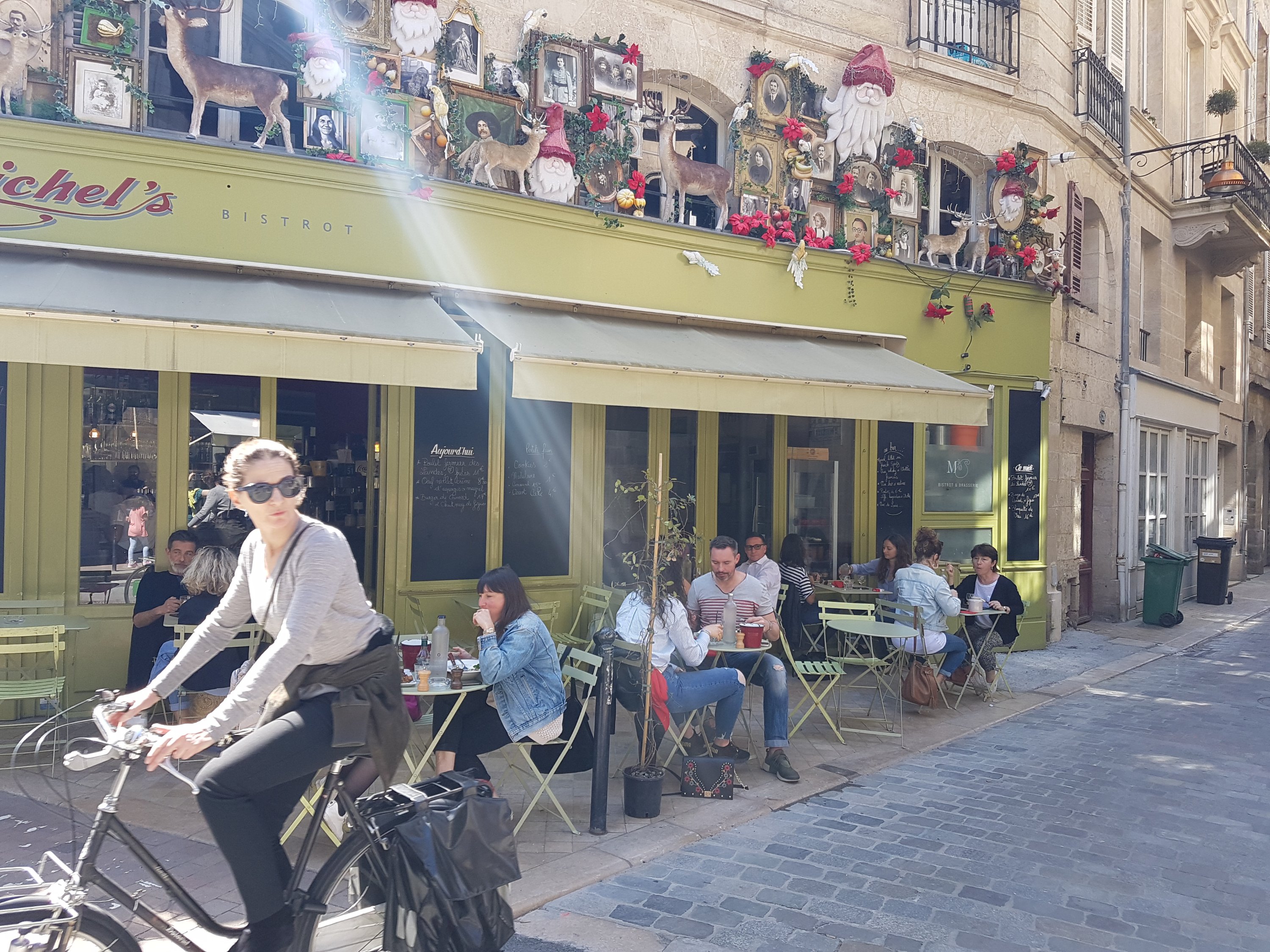 Prise de marques dans notre immense demeure, et par un temps qui se réchauffe de plus en plus (28°C annoncés aujourd’hui). Nous sommes partis à la découverte de Bordeaux à seulement 50 min de route, avant affronter demain à vélo 30 km de côtes de Saint-Emilion.