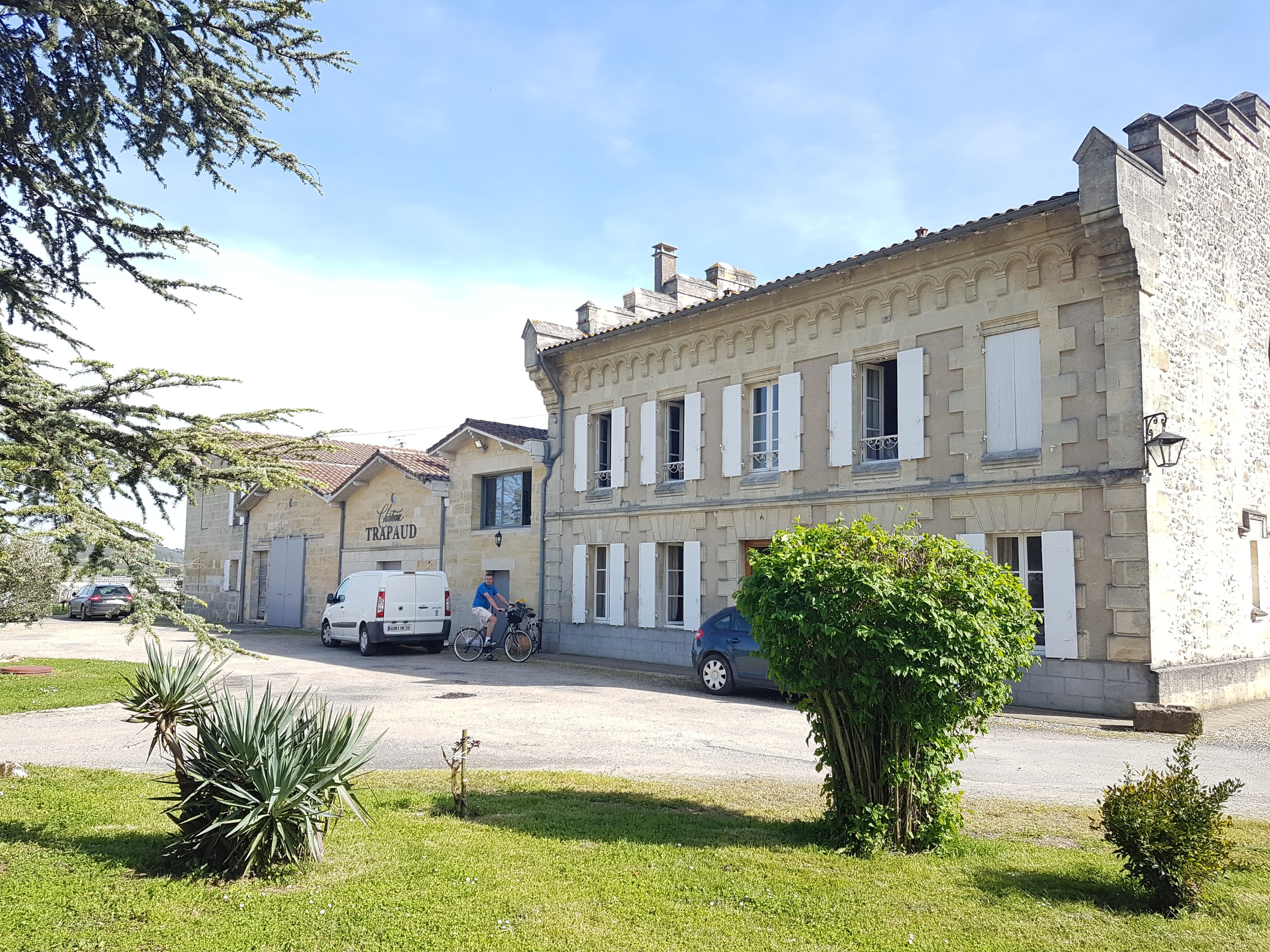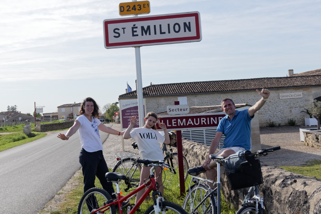 Notre balade à vélo nous a aussi menés aux chais du Château Trapaud à Saint-Étienne de Lisse avant de grimper la colline de Saint-Emilion pour terminer notre boucle « Entre vignes et Dordogne ».