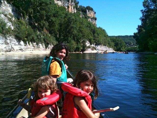 Aujourd’hui journée de transition au camping, des départs et de nouveaux arrivants si bien que c’est toujours complet ! Coup de fil de Pierre. Grande ballade en canoé de 2h30 depuis Cenac jusque Beynac sur la Dordogne bien sûr ! Tout le monde pagaie et nous avons même le temps de s’arrêter tremper le maillot pour se rafraichir. Finish après le pont à droite à la barraque à frites (avec du ketchup pour Maurine). Après-midi à l’ombre au camping, Julie s’est éclatée à nager avec ses nouveaux brassards dans l’eau plutôt glacée. Apéro à Domme et courses pour le soir: un bon cassoulet de canard. Feu à la tombée de la nuit avec nos voisins les Anglais.