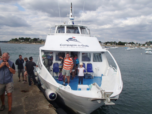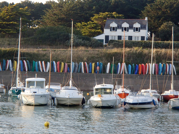 L’après midi, nous allons donc à la plage de Goh Velin, juste à côté pour se reposer et faire du cerf-volant. Nous terminons l’après midi à Port Navalo, d’où partent de nombreux bâteaux qui desservent les île du Golfe et le continent. C’est le point le plus proche avec Locmariaquer, à 1 km, là ou le Golfe communique avec l’océan.