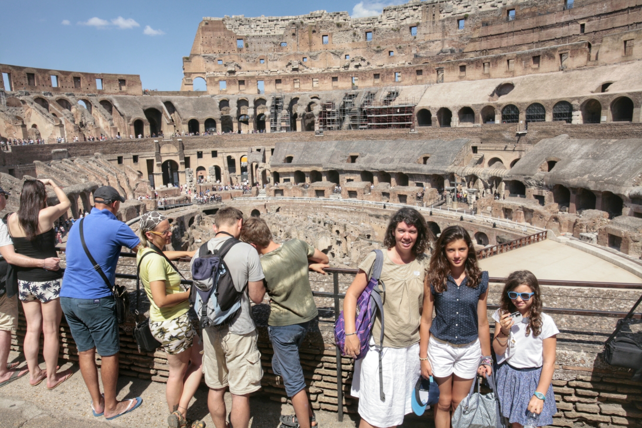 Le gros morceau devant nous à la sortie du métro tous les matins, c’est le colisée. Par chance nous arrivons juste à l’heure de la seule visite en français de la journée pour découvrir plus posément ce colosse. Un incontournable mais aussi un formidable rocher chauffé par le soleil ardent, les coins d’ombres coûtent chers !