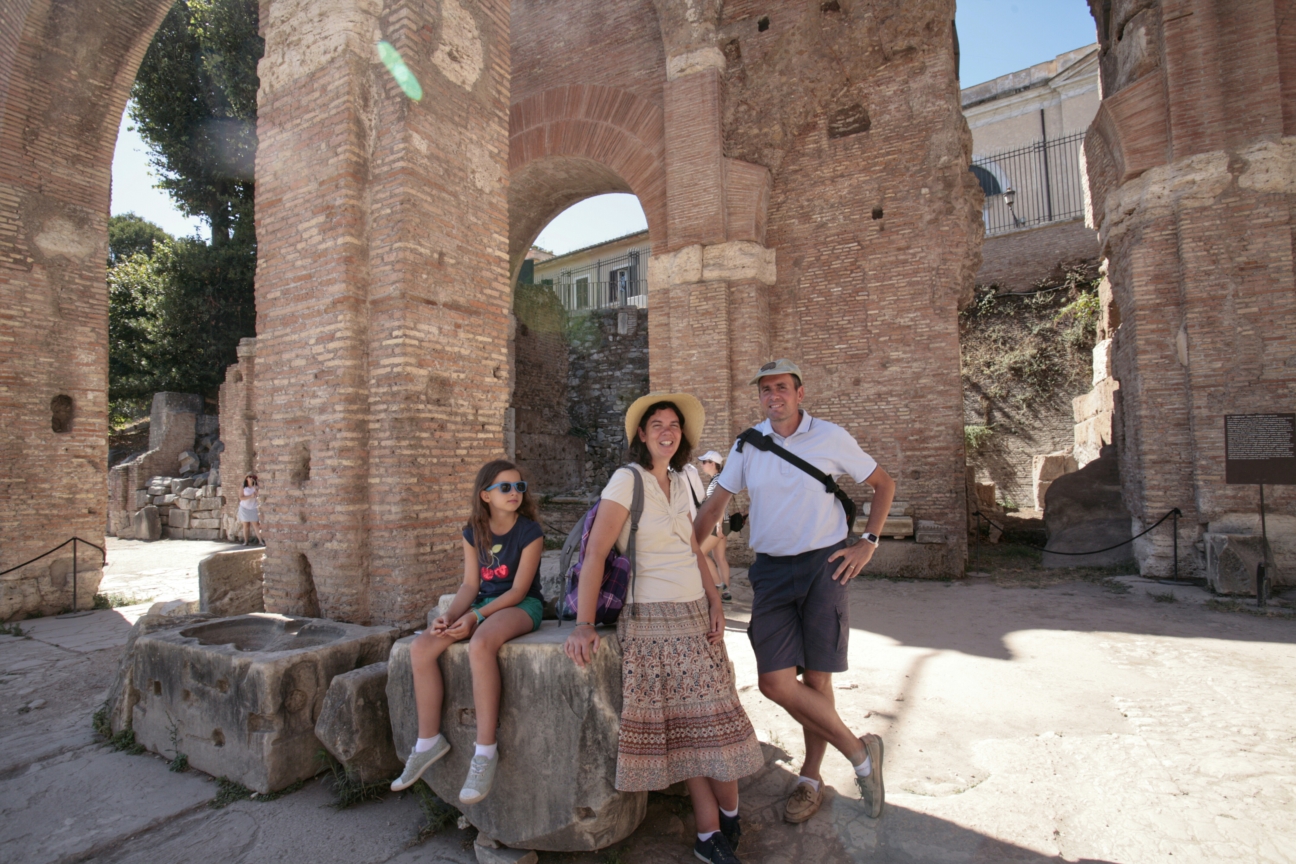Le gros morceau devant nous à la sortie du métro tous les matins, c’est le colisée. Par chance nous arrivons juste à l’heure de la seule visite en français de la journée pour découvrir plus posément ce colosse. Un incontournable mais aussi un formidable rocher chauffé par le soleil ardent, les coins d’ombres coûtent chers !
